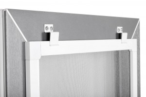 Это также рамочный вид москитных сеток. Однако крепление представляет собой металлические защелки (у нас их 8 штук), которые монтируются к раме москитной сетки. Фиксация происходит внутри рамы окна за счет поворота защелок.